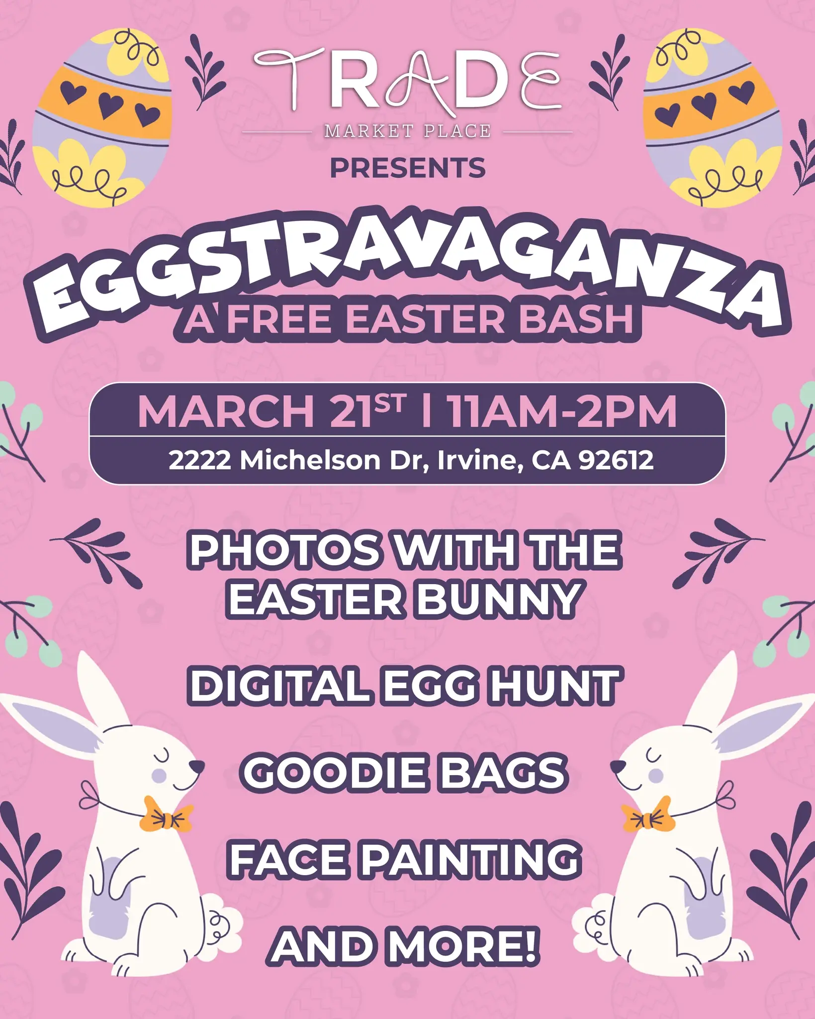 Celebrate spring at Eggstravaganza, a FREE Easter Bash at TRADE Marketplace on Saturday, March 21st from 11AM–2PM. Guests can enjoy photos with the Easter Bunny, free goodie bags (while supplies last), face painting, a digital egg hunt, and more festive fun. Don’t miss this family-friendly community event!